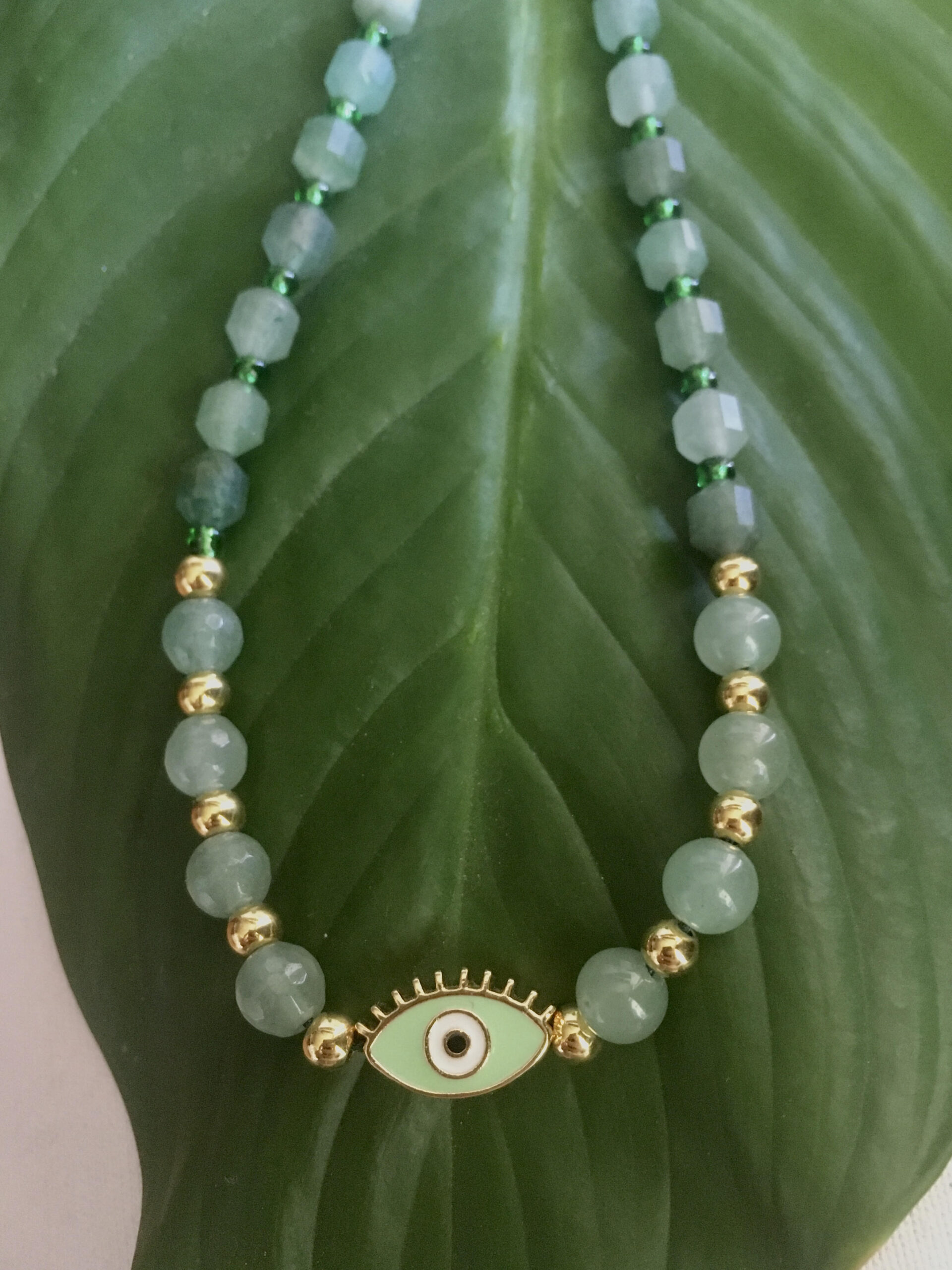 Κολιέ πράσινο με Αβεντουρίνη  ημιπολύτιμους λίθους , με μάτι